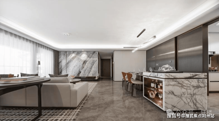 另外,房间内还有岩板电视背景墙、定制成品餐边柜、主卧皮革硬包床头背景墙等等,这些内饰,也让狮山金茂府的室内充斥着精致感与奢华感。