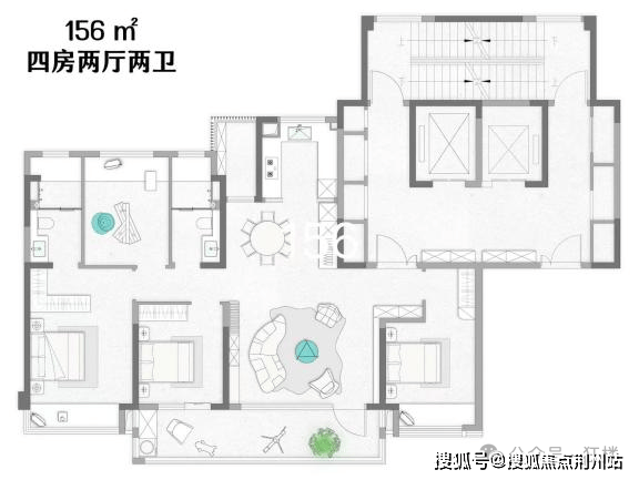 比如这款建面约156㎡户型——