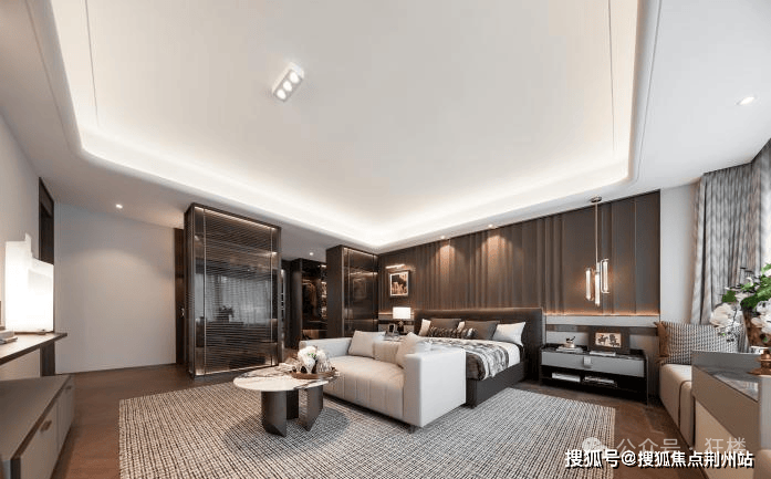 南向有3个卧室,其中有两个都是套房设计,主卧宛如一个行政套房,无论是休息区还是衣帽间亦或者是主卫,都有着超宽尺度,舒适性拉满,真的是太懂富人需求了!