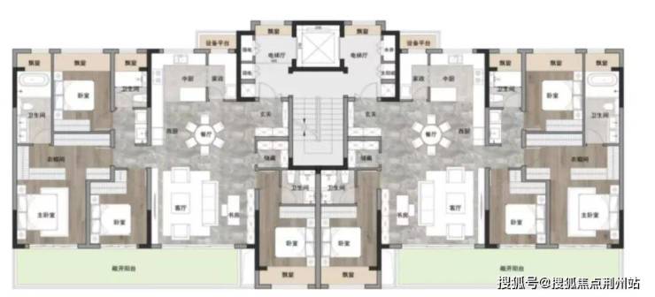 超宽三连大阳台,四开间布局,大横厅,双套房设计,电梯双开门互不影响,保障私密。