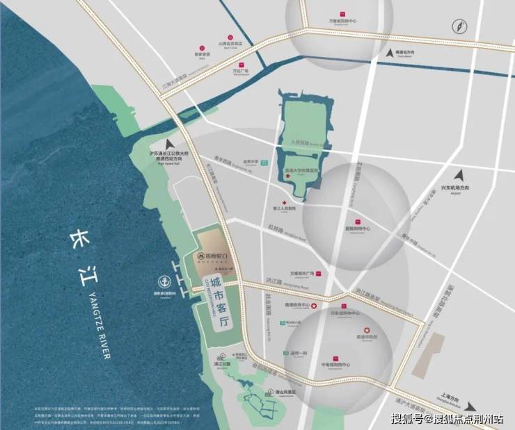 商业配套;政府未来规划围绕港池打造三座五星级酒店群,以五星级酒店群为依托,结合江边商业Mall、滨水商业街。形成休闲与文创共荣的混合街区,打造南通顶尖商业完全体。