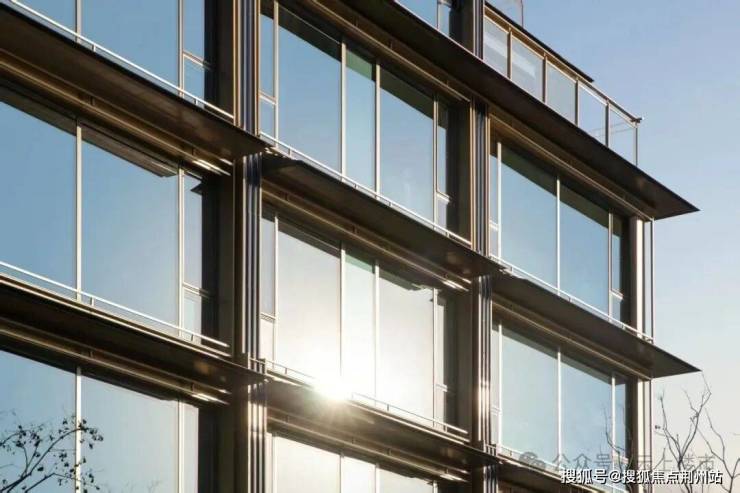 建筑设计灵感来源于运河文化,以官船结构为原型,融合风帆线条与水纹格栅,勾勒出独具东方气韵的建筑轮廓。立面材质上,水纹金属格栅、琉璃釉面陶砖与蓝色陶板的巧妙组合,不仅在视觉上和谐统一,更在触感与细节中,彰显对品质的极致追求。
