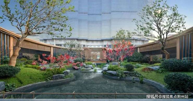 踏出晓月序厅,步入二进院中。全冠移植的乌桕、红枫在眼前自在舒展,每一株树形都经过精挑细选;叠石流水粼粼水光,呈现出立体纵深感及自然山石的野趣。