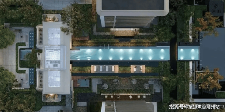 地面层通过开放式布局,将社区绿化与城市界面无缝衔接。抬板之上的花园层,则是业主私享的“空中森林”。设计以“一轴多园”为脉络,规划了中央景观轴与多个主题花园。其中,一条近60米长的“马尔代夫水之轴”成为视觉焦点,蜿蜒的水系与戏水池构成清凉活泼的社区核心。而约6000平方米的立体生态泛会所,更是将景观与功能完美融合:地下会所拥有同等面积的下沉庭院,引入自然光与风;抬升一层的架空层成为景观视野极佳的休闲平台。景观、建筑与功能空间在此三维交织,形成一个可游、可赏、可栖的沉浸式森境。