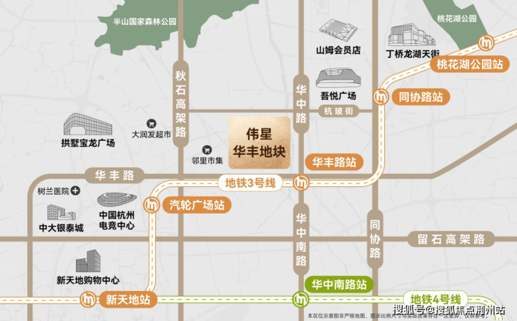 星宜嘉映府的诞生,根植于杭州主城区土地价值逻辑的深刻演变与伟星房产深耕杭州的产品雄心。项目位于拱墅区华丰板块的核心腹地,具体坐落于华丰路与华西路交叉口,占据着板块的中心位置。这一区位赋予了项目无与伦比的便利性:步行约100米即可抵达地铁3号线华丰路站,真正实现了“地铁零距离”生活;周边一公里范围内,拱墅吾悦广场、山姆会员店等大型商业综合体环伺,树兰医院、市中医院、景成实验学校等优质生活配套完善,构成了醇熟便捷的都市生活圈。