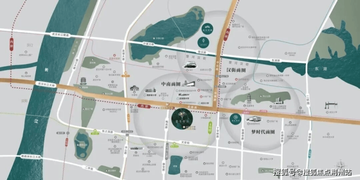 洪山公园、首义公园近拥环抱,紫阳公园、黄鹤楼公园等城市生态绿肺咫尺可达,为繁华城芯提供鲜氧沁养与悠然漫步空间。