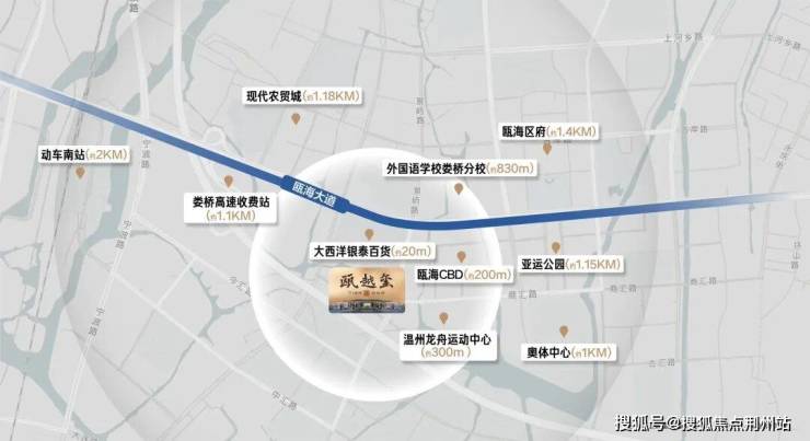 项目往北约500米即是瓯海大道,连接龙湾机场,串联起温州三大行政中心区,毗邻温州高铁南站与温丽高速娄桥收费站,坐拥s1轻轨线、地铁M线(规划)等,繁华世界咫尺可触。