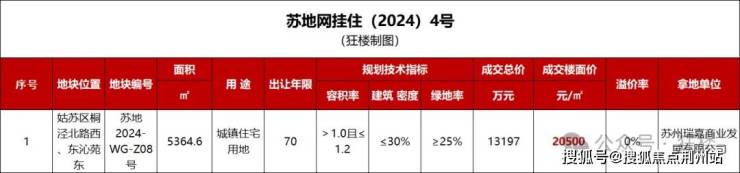 2024年7月,苏州瑞嘉商业发展有限公司以总价1.3亿,拿下金门路Z08号地块,成交楼面地价20500元/㎡。