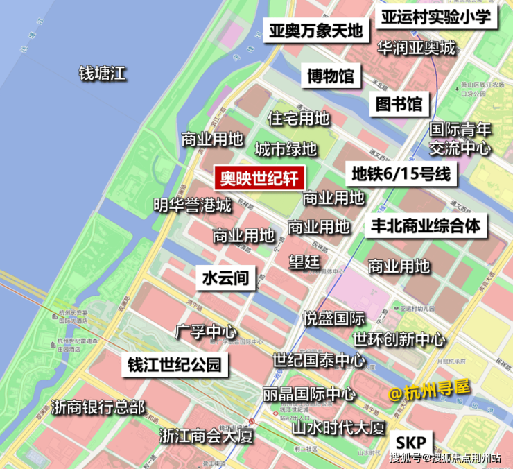 先看区位,奥映世纪轩距钱塘江400多米,位于钱塘湾未来总部基地核心区范围内,距亚奥万象天地约700米,地段很不错,目前放风价约8-10万/㎡。