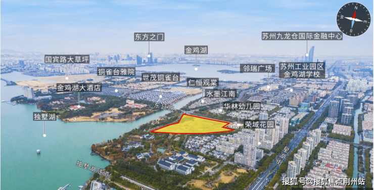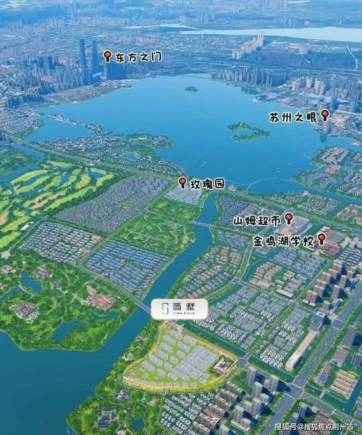 「晋墅」落子园区双湖正核——东延路南、西华林街东,直面独墅湖一线湖景,西眺金鸡湖大酒店,南侧为无遮挡绿地,堪称“双湖半岛秘境”。地块容积率仅1.02,是苏州近年罕见的低密宅地。