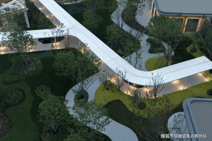 回家的路上,经过下沉式景观庭院,有多样休憩放松的自由空间。同时,项目配置风雨连廊,下雨也能保障归家之路无忧。