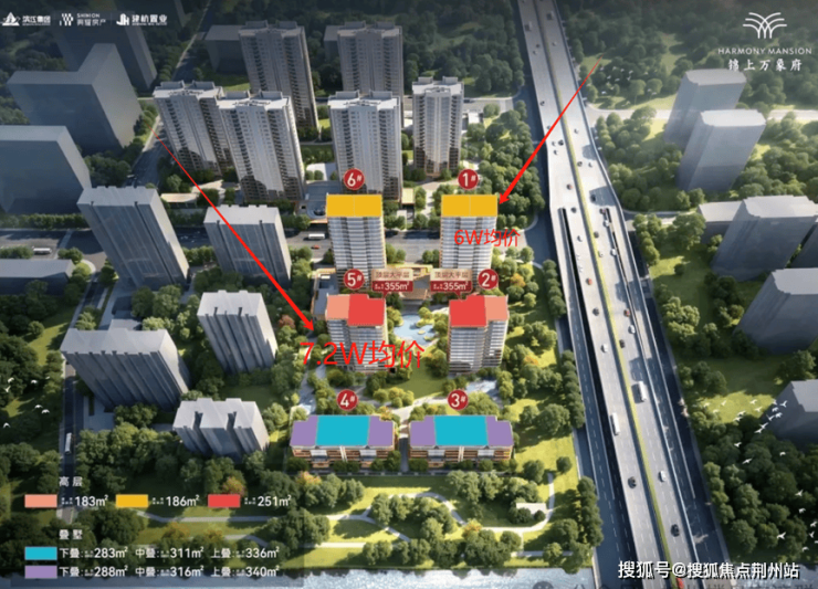 因为高架影响,首开楼幢定价差异大,1#186户型均价只有6W。