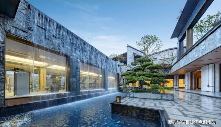 瀑布跌落之处,正是南区的下沉式会所。透过整面的落地玻璃,倾泻而下的流水近在眼前。