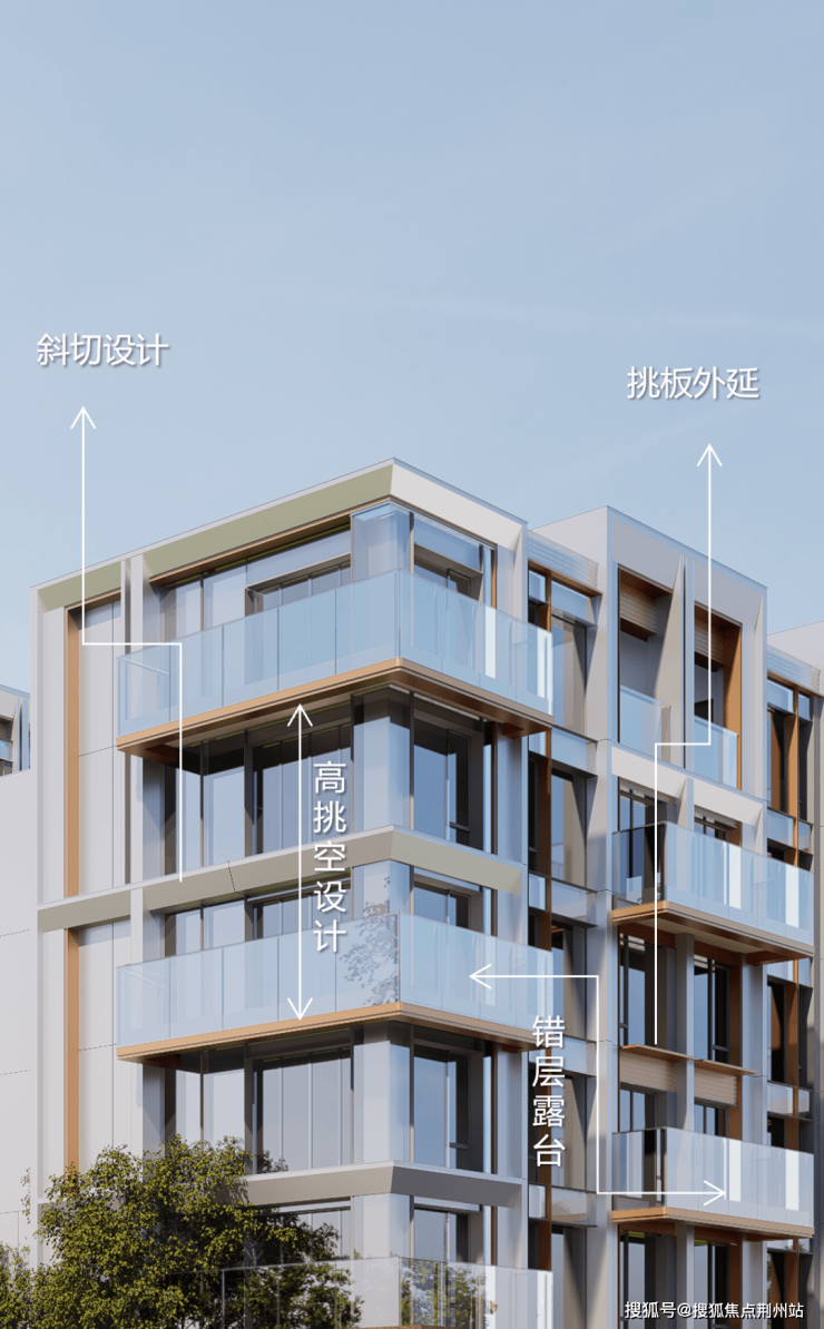 尤其是其铝板斜切的铺装工艺,不仅成本投入大,更能优化下层住户的自然采光。同时斜切铺装的介入,通过几何形态重构与光影互动,将外立面从平面转化为立体,拉大整体视觉的穿透感。