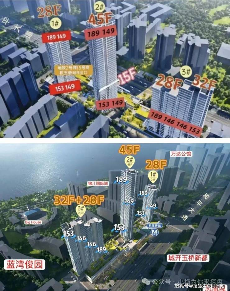 项目一共3栋楼,1号楼28F,2号楼45F,3号楼两个单元,一个28F,一个32F。项目户型为146/153/188㎡。