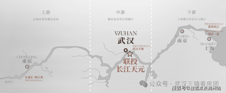 中国版图对折,中心是武汉,因此自古就有“群首武汉,中国天元”之称;武汉版图对折,中心是武昌内环滨江,因此武昌滨江是当之无愧的武汉天元;武昌滨江核心为长江大桥与二桥之间,此段版图对折,中心正是联投长江天元,因此联投长江天元位列中国天元正心之位,地段唯一无法复刻。