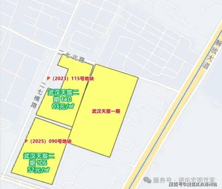 武汉天宸二期由P(2023)115号地块和P(2025)090号地块组成,其中P(2025)090号地块是武汉地铁在今年9月25日的土拍中拿下的,成交楼面价10652元/㎡,P(2023)115号地块是武汉地铁在2023年12月底拿下的,成交楼面价为14003.6元/㎡,两个地块共同组成了二期。