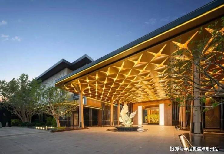 整座大门约43米恢弘门头,第一眼的尺度感足以让人惊艳,再搭配200多片百合花瓣组成的金色吊顶,是目前板块内非常气派的归家大门,视觉效果非常震撼。