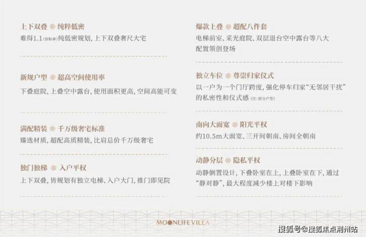 新规户型八大升级,以独门独梯、独立车位、阳光平权、动静分层、超高空间使用率的上下双叠奢尺大宅,实现家庭全生命周期的居住理想。