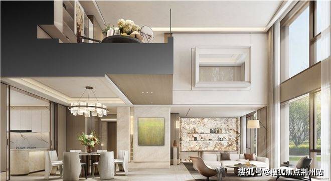 ◎ 超宽绰会客空间——约9.9米巨幕面宽 + 约6.3米大尺度景观客厅(朝南三面宽)+ 约6.5米挑空 迭新视界排场