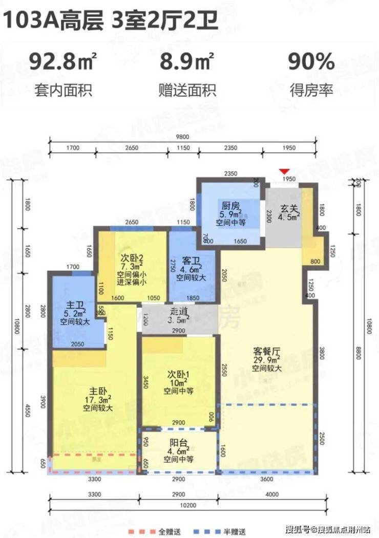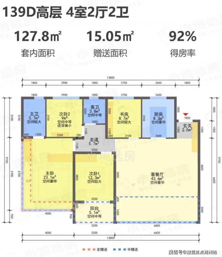 阳台仅算一半建筑面积,实际得房率极高!