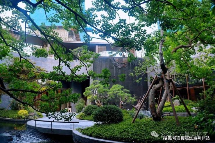 飞瀑流泉,由珍宝奢石流瀑形成震撼的记忆点,乌桕、原石、潭水、瀑布等辉映成趣,以艺术创想交融自然诗意与视觉盛宴。