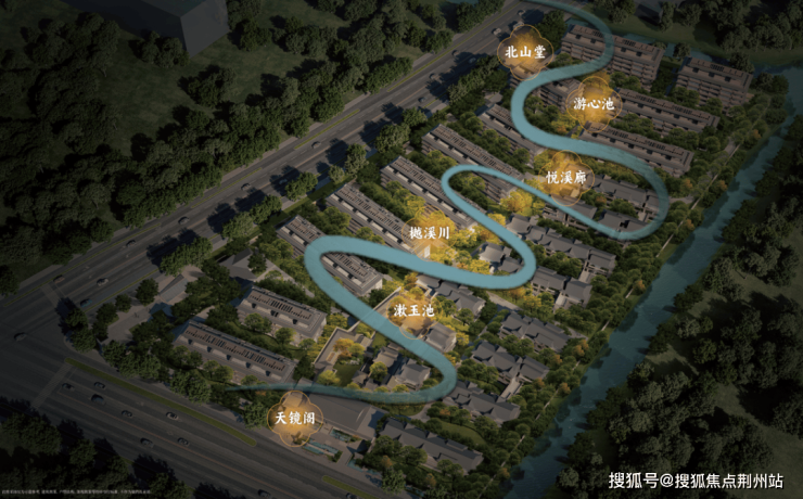 项目坐拥双河环抱、两水交汇的天然岛境,以「玉带湾」水岸绿带串联活水,呼应苏州“水陆并行、河街相邻”的古城格局,重塑当代江南水乡肌理。