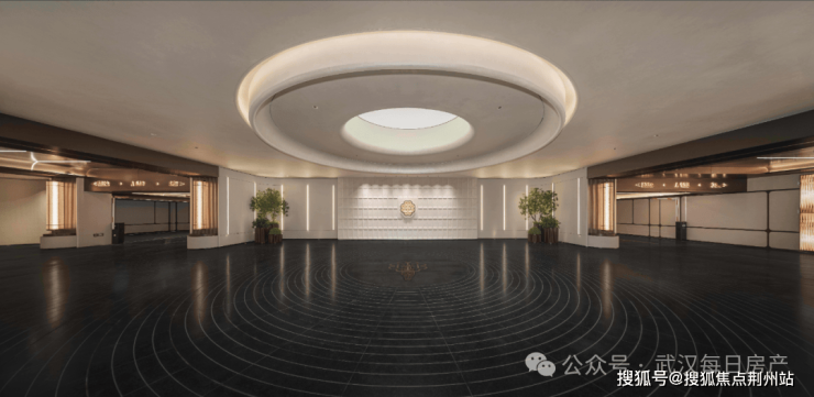 入户三重礼序——拼花步道招财纳福,景墙融黄鹤楼窗棱与钱纹吉意,天幕寓意着光明吉祥,尊贵高雅,将归家行径升华为文化朝圣。