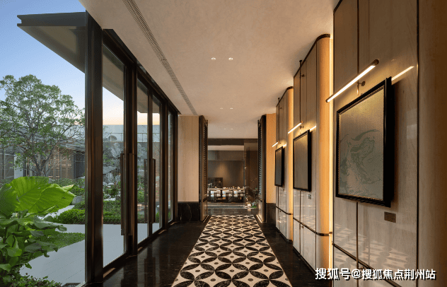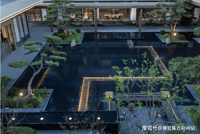 顺着环绕水面的风雨连廊,三进豪华泛会所——值得关注的是,泛会所中央正是龙湾首个高品质下沉式景观庭院,叠石瀑布飞泻而下,乌桕林影疏朗摇曳,宛若一线之隔,便从现代建筑的精致场域,倏然隐入自然的清幽秘境;