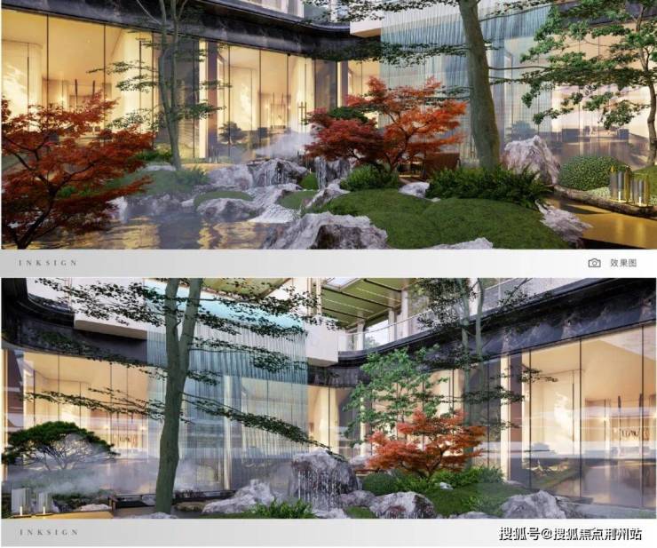 立体下沉式园林营造沉浸式景观层次,通过立体绿化、情景会客点,营造可游可憩的邻里交往空间。