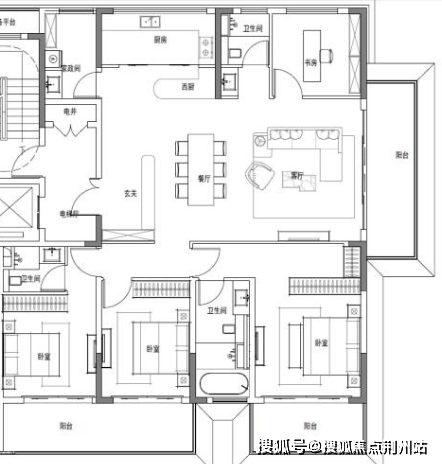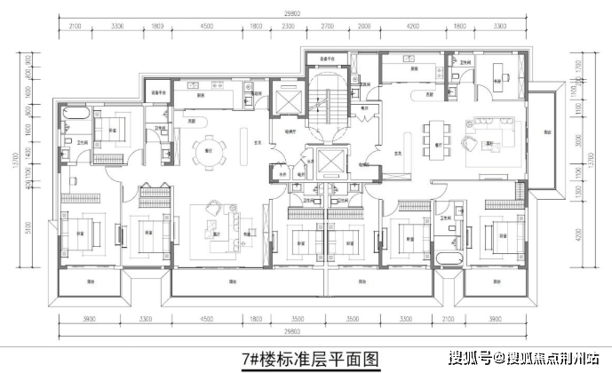 7#西边户,南北大通厅,带独立家政间。