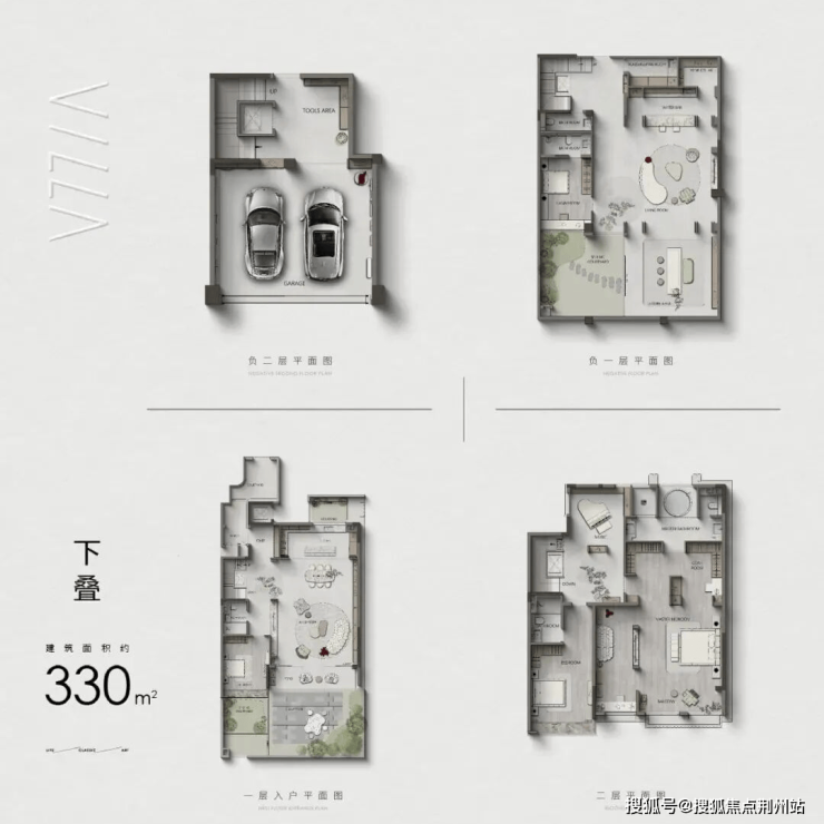 建面约330㎡下叠,共4层,可南北入户、同时地下二层带独立车库客直接入户,一层带花园。