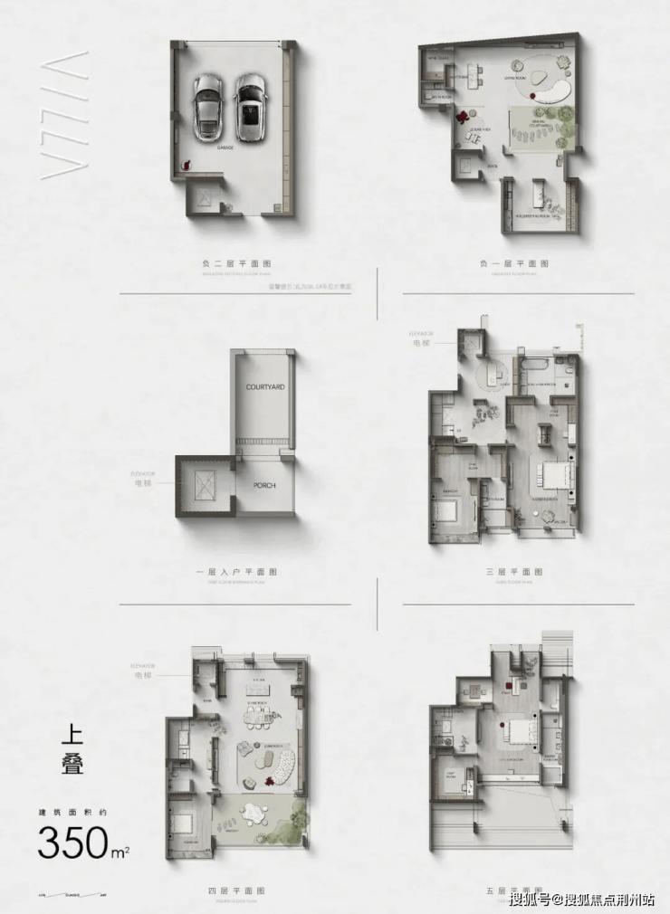 中堃纯新盘门东VILLA,近日户型图曝光。项目规划5栋4层叠墅,面积330-350㎡
