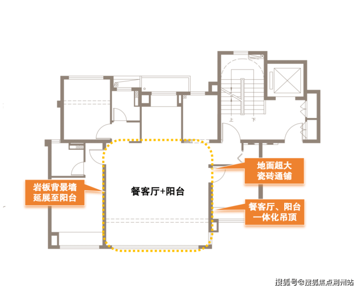 精装的重设:建发为了给到业主更好的居住体验,在精装时考虑到后期改造需求,比如大多户型餐客厅及阳台地面采用超大尺寸瓷砖通铺,吊顶同样从餐客厅延伸至阳台,连背景墙岩板都将阳台纳入在内。