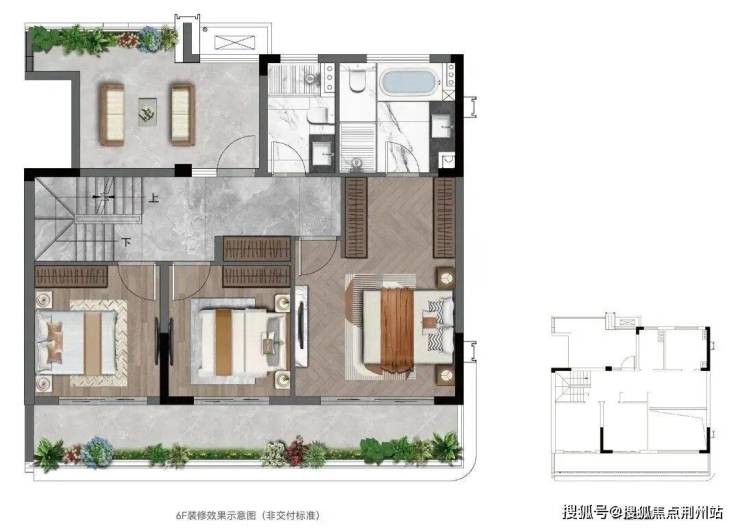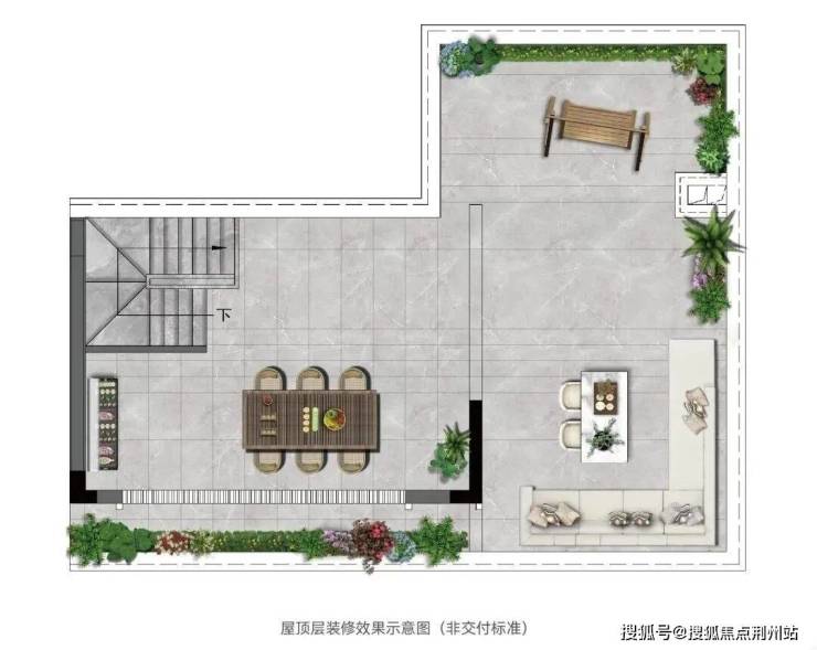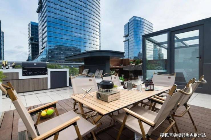 上叠(约 169㎡):5 - 6 层的云端生活空间,采用 LDKB 一体化设计,即客厅、餐厅、厨房、阳台一体化,形成轩敞开阔的公共活动空间,方便家庭成员之间的互动交流。更有约 55 - 60㎡星空屋顶花园,业主可在此打造家庭烧烤区、观景台、花园等,享受浪漫的户外生活。