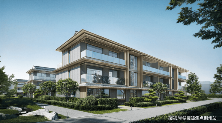 虽然户型开间不如目前大火的四季听澜,但芳菲澜院立面造型可比四季听澜好太多了。据开发商说,萃取唐伯虎《仿古山水册》三段式经典构图,融合苏式屏风山墙的型物之美,打造联排别墅的建筑形体。