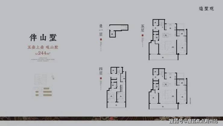 隐山四叠建面约233-340㎡,五叠建面约243-423㎡,合院建面约436-618㎡,项目已于近日公开了叠墅+合院户型图。