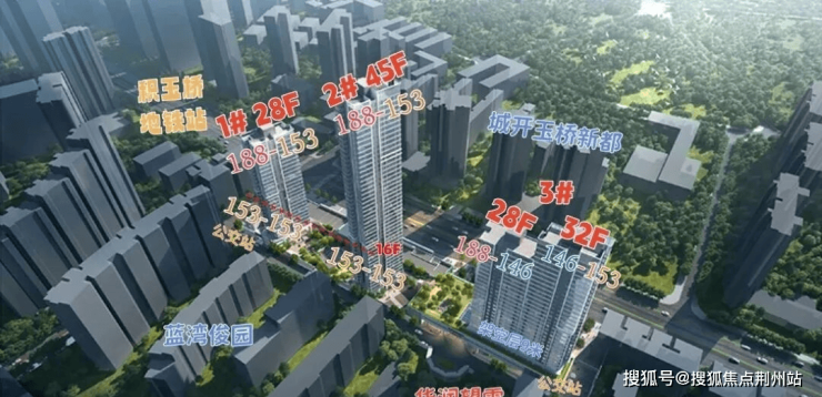 项目一共3栋楼,1号楼28F,2号楼45F,3号楼两个单元,一个28F,一个32F。项目户型为146/153/188㎡。