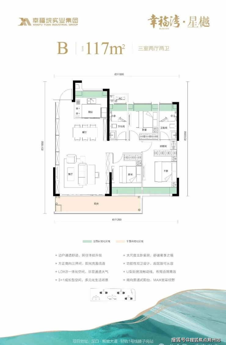 1、优化后空间使用率最高约94%;2、整层全部为128㎡户型,圈层纯粹;3、电梯临近入户,电梯厅前室无其他住户共享;4、四面宽朝南;5、LDKB一体化空间;6、大尺度主卧套房;7、南向贯通式阳台;8、L型厨房流畅动线;9、功能性双卫设计。