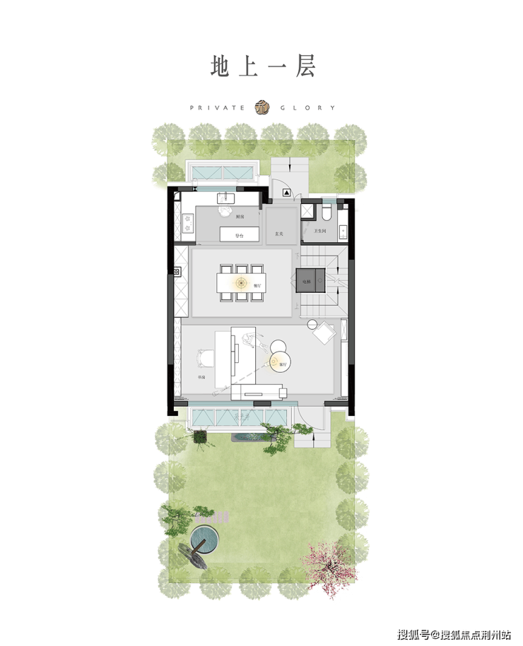 四周下沉式秘境花园,与一层地面花园形成错落有致的南北双私家庭院,妈妈的花园、爸爸的天然茶室、孩子的童趣天地、宠物的撒欢空间...都能得到满足。