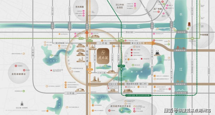 由汉阳城更匠心打造的花木深项目,择址在王家湾正二环,紧临2环线、地铁3号线、4号线和在建的12号线,步行即达王家湾商圈——汇聚人信汇、摩尔城、汉商21世纪、京东Mall(预计2026年上半年开业)等大型商业体。门口紧邻市政公园,步行约350米即可达约411公顷的墨水湖公园,可享受湖园双栖生活。