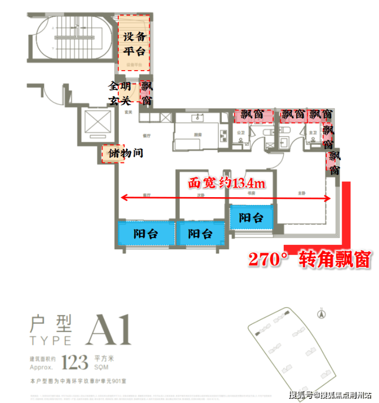 且该户型南向面宽做到约13.4m,再一次远超市场同类产品。
