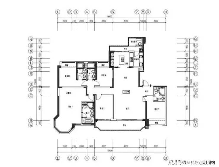 与A1结构相似,同样为四开间朝南约19.5m,南北双阳台,北向的两个卧室均带有独卫;南向的主卧配有独卫和衣帽间,次卧配有独卫。