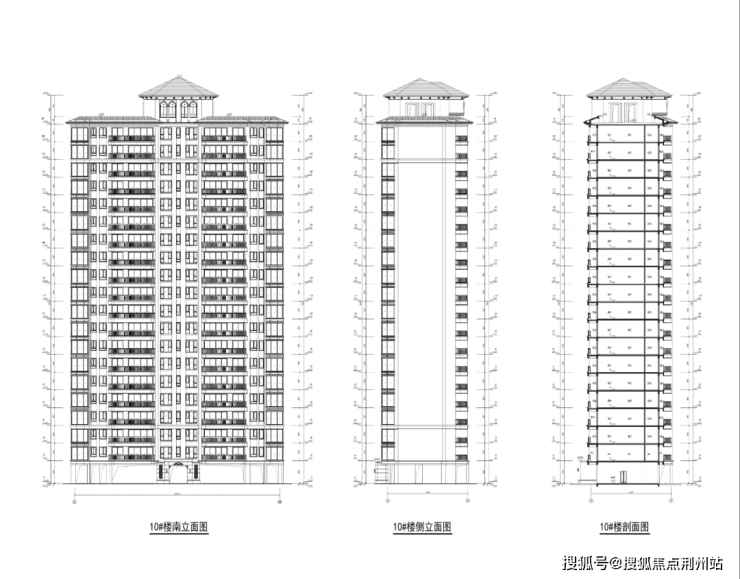10号楼单体楼栋立面图和剖面图,1楼约4.6m,标准层高3米6!
