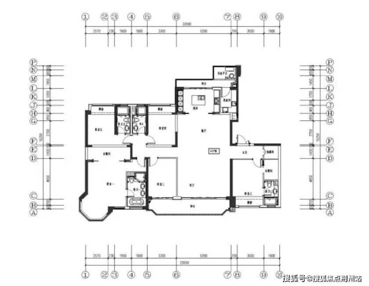 四开间朝南约22m,客厅是宽厅设计,开间约6.2米。南北双阳台,南向双联阳台开间约9.5米。南向三个卧室中,其中两个卧室为套房设计,带独卫和衣帽间。北卧室均有独卫。