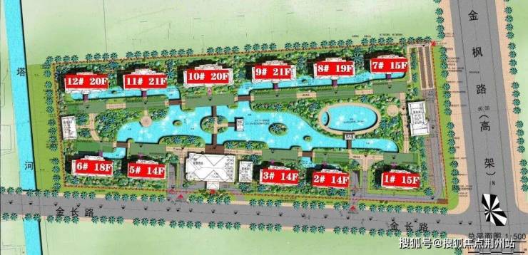 社区规划:11幢14-21F住宅(7栋14-19F小高层、4栋20-21F高层)