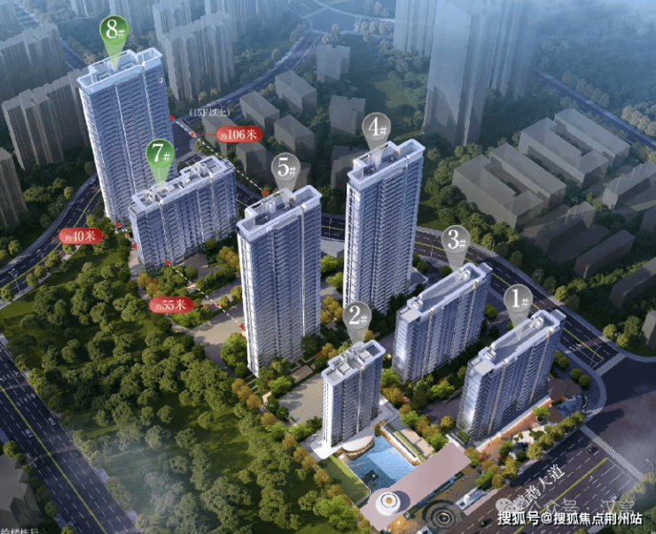 8号楼总高33层,一楼架空,与7号楼的楼间距约39米。