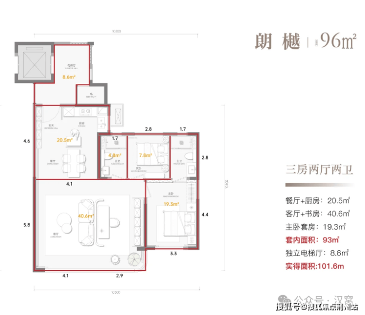 8号楼高层为三梯四户布局,1个单元,主打96平三房两卫、119平四房两卫,共计184套房源,这个跟之前的高层户型、配置是一样的,两个中间户通过贯穿式双开门电梯可以实现专梯入户的效果,也就是说,项目所有户型都能实现专梯入户,以及可利用的专属电梯厅,变相增加了拓展面积
