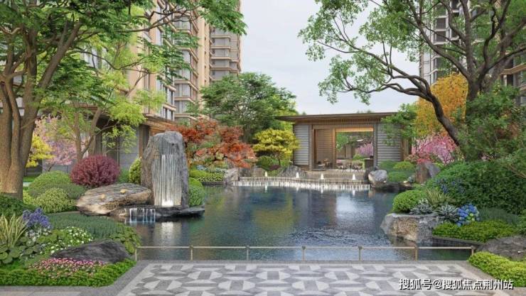 而会所外部则是近1000㎡下沉式飞瀑庭院,景致秀丽。