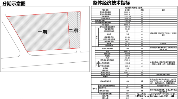 据了解,项目分为二期建设,总建筑面积217512.65㎡,计容建筑面积135282.20㎡,配建一所6班幼儿园和养老服务用房,整体容积率2.4,住宅户数1200户。